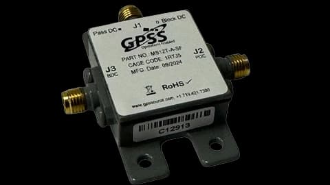 A tiny qualified splitter that still delivers full-size performance, the MS12T is perfect for unmanned aerial vehicles (UAVs) or any other applications with size and weight constraints. It is standard configured with EMI Shielding, Waterproofing and is Hermetically Sealed for long-term durability in even the most rugged applications. The MS12T will allow the signal from one GPS antenna to be split between two GPS/GNSS devices. It can be configured to Pass DC from a connected receiver to also power an external GPS Antenna or both outputs can be DC blocked.